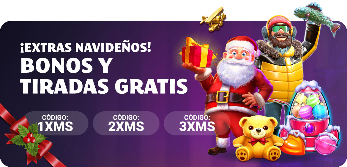 Con su depósito de 30€ o más usando el código promocional 2XMS el usuario recibirá 10€ en Bono Casino y 20 Tiradas Gratis en Santas Wonderland.