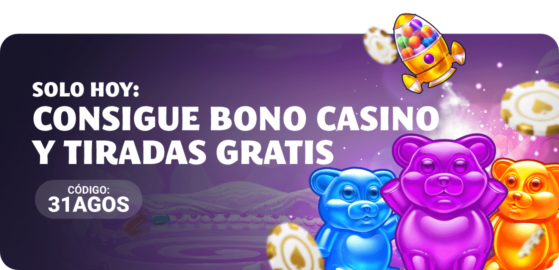 Usa el código promocional 31AGOS con tu depósito de al menos 30€ y recibirás 10€ de Bono y 10 Tiradas Gratis en la slot Sugar Rush.