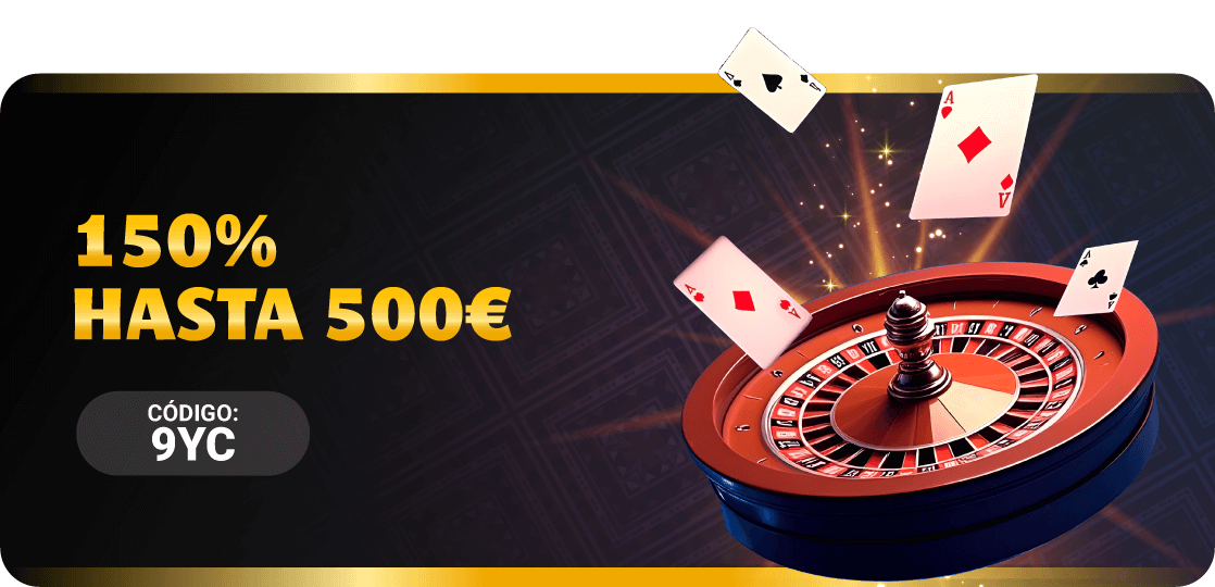 Haz un depósito de 10€ o más con el código 9YC y recibe un 150% EXTRA en el mismo, ¡podrás conseguir hasta 500€ en bono!