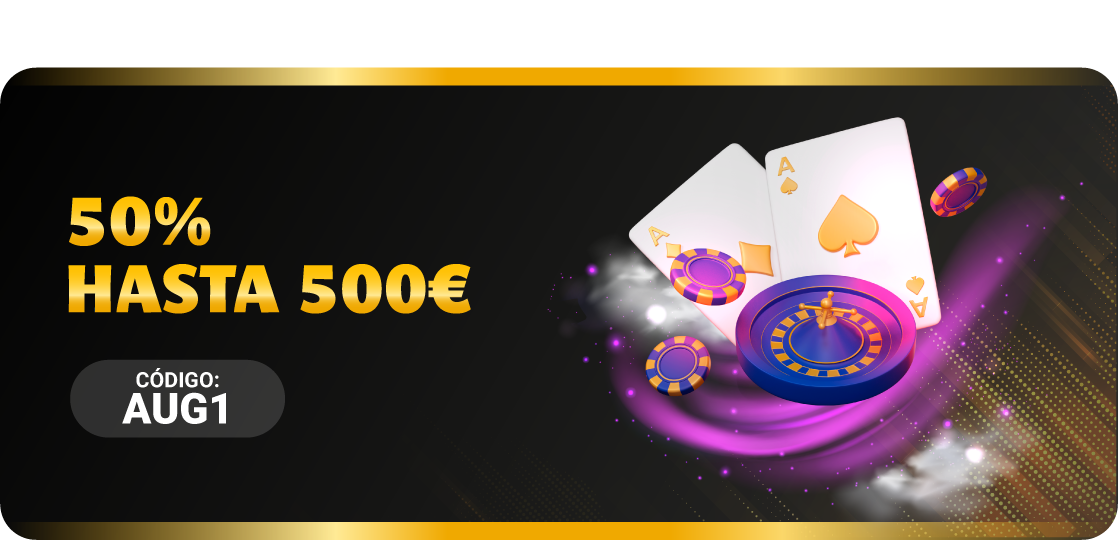Haz un depósito de 40€ o más con el código AUG1 y recibe un 50% EXTRA en el mismo, ¡podrás conseguir hasta 500€ en bono!