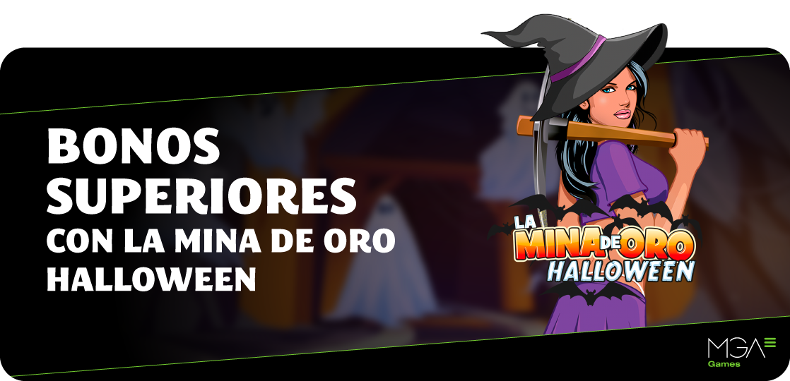 Vive al máximo diversión in YoCasino: Juega en los juegos de MGA Games durante el periodo promocional y llévate 5 bonos superiores. ¡Y hay más! Porque si juegas 30€ o más en la Mina de Oro Halloween podrás recibir 25 Bonos Superiores extra.