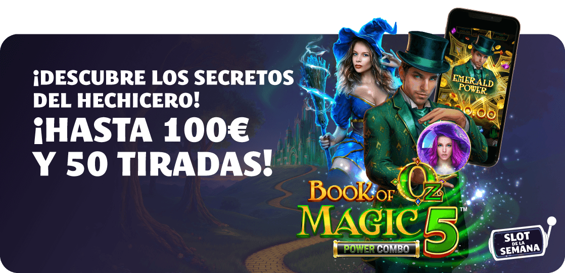 La promoción Slot de la Semana: Book of Oz Magic 5 tendrá lugar desde el 11 hasta el 17 de febrero de 2026 a las 23:59, hora peninsular española.