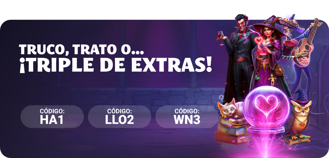 | WN3 | 50€ | 20€ en Bono Casino y 30 Tiradas Gratis en Day of Dead. |