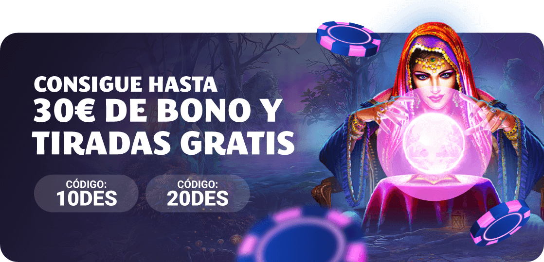 - Opción 1: Deposita 20€ con el código 10DES para conseguir 10€ en bono casino y 10 tiradas gratis en Madame Destiny Megaways.