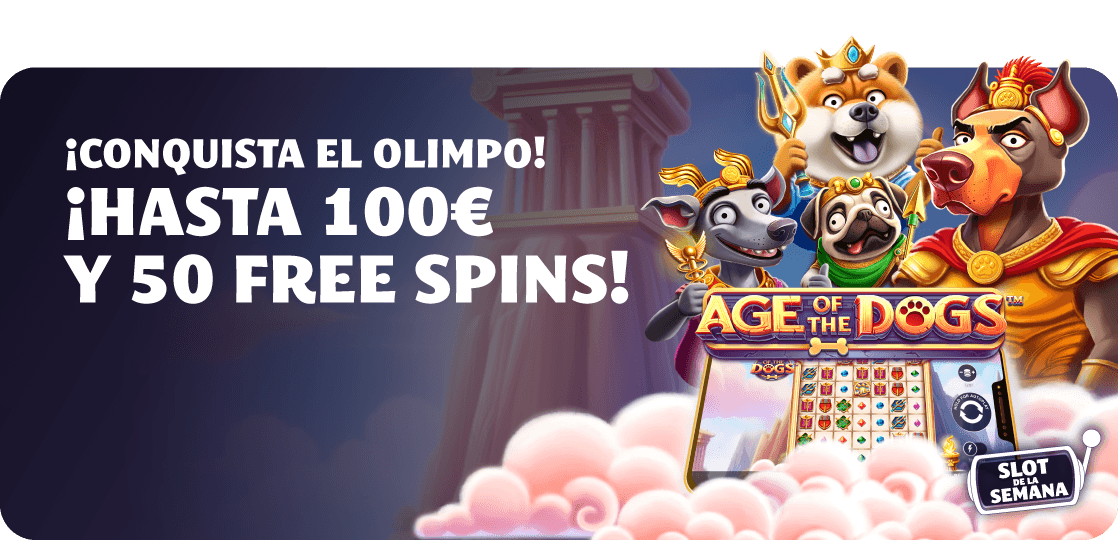 ¡Disfruta de Age of the Dogs, nuestra slot de la semana! A partir de 50€ jugados podrás obtener hasta 100€ en Bonos y 50 Free Spins en la slot Joker Jewels. ¡Ven a conocerla! Para participar primero inscribete aquí: