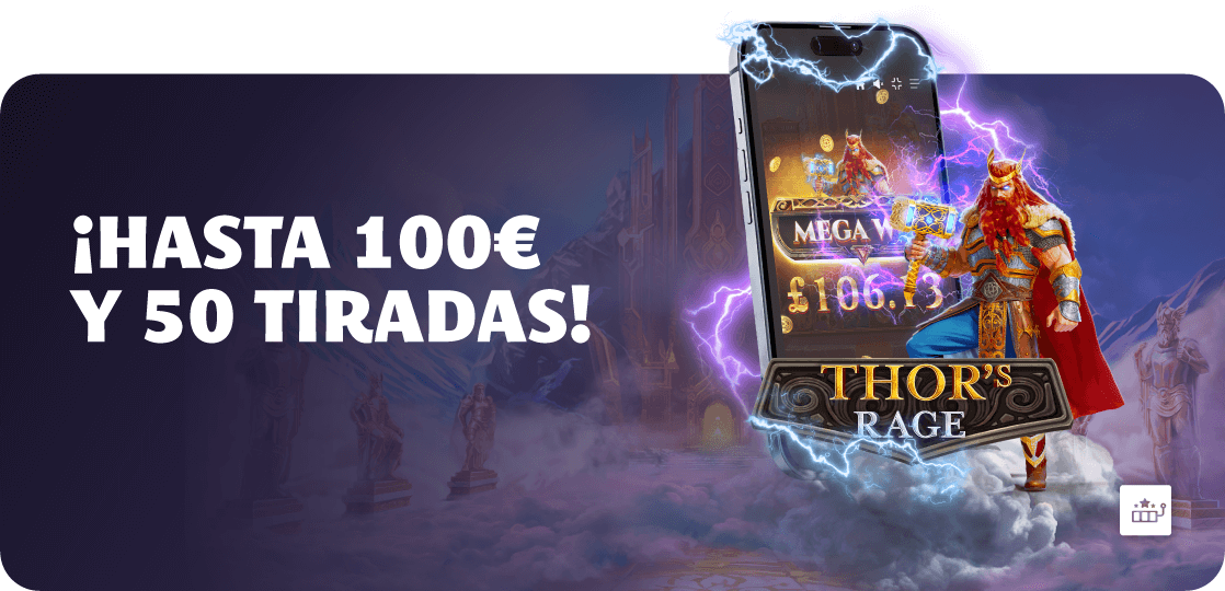 ¡Thor’s Rage es nuestra slot destacada de esta semana! Para participar primero inscríbete aquí. Luego juega 50€ o más en esta slot y podrás obtener hasta 100€ en Bonos y 50 Tiradas Gratis en la slot Tiny Toads.
