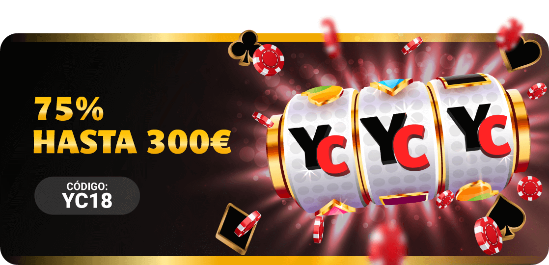 Haz un depósito de 30€ o más con el código YC18 y recibe un 75% EXTRA en el mismo, ¡podrás conseguir hasta 300€ en bono!