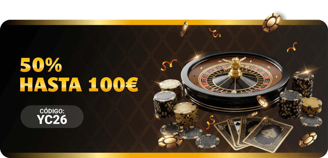 Haz un depósito de 35€ o más con el código YC26 y recibe un 50% EXTRA en el mismo, ¡podrás conseguir hasta 100€ en bono!